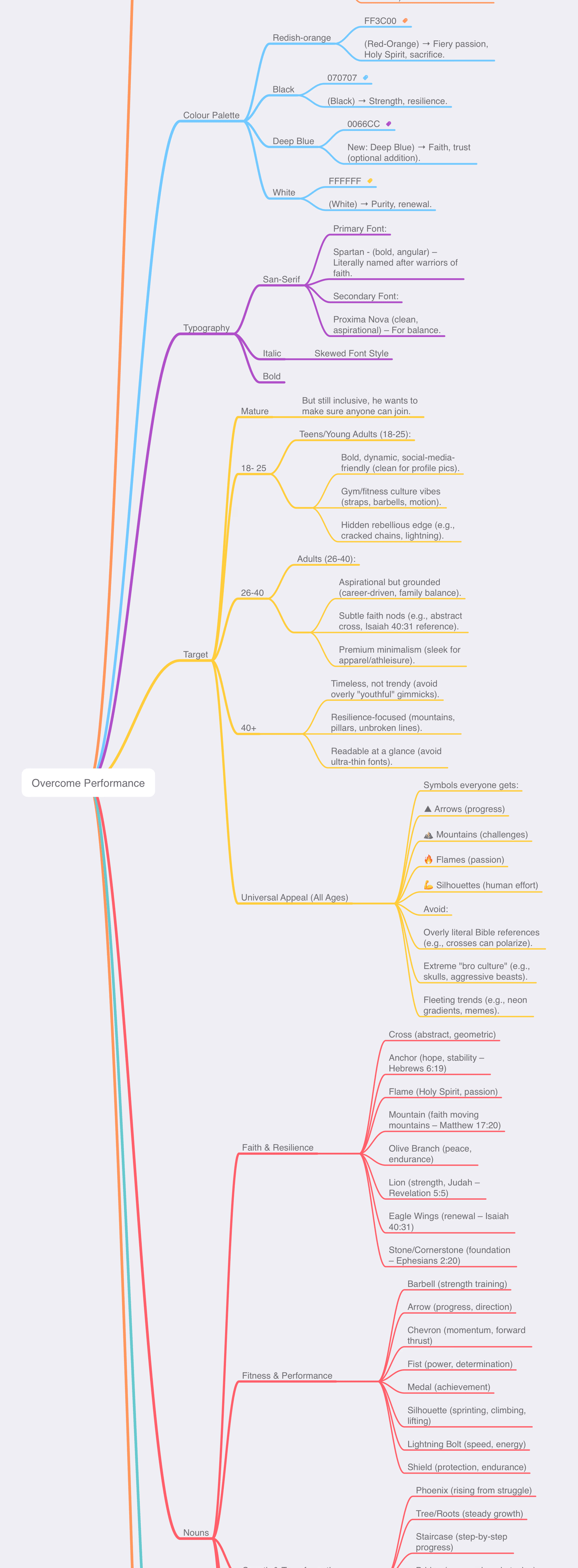 Moodboard & Mindmap – I collected imagery, colors, and references that balanced strength with clarity: bold typography, athletic visuals, and motivational design cues. The mindmap helped tie everything back to the core brand values, making sure nothing was just “aesthetic” but actually had meaning.
