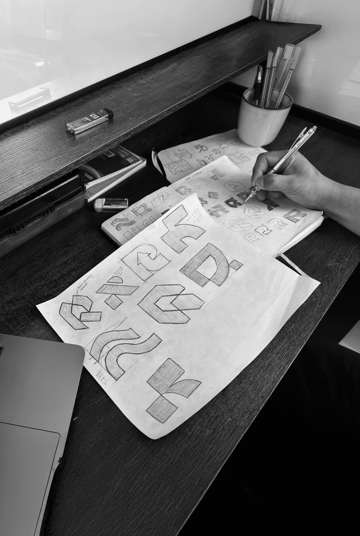 After aligning on the mood board, I moved into sketching out logo concepts. This stage is all about exploring lots of directions quickly and letting the ideas flow without overthinking. Once I had a range of sketches, I began refining the strongest ones digitally. The mood board stayed open on my screen throughout the process as a visual compass, helping me make sure every direction tied back to the brand values we had uncovered earlier.